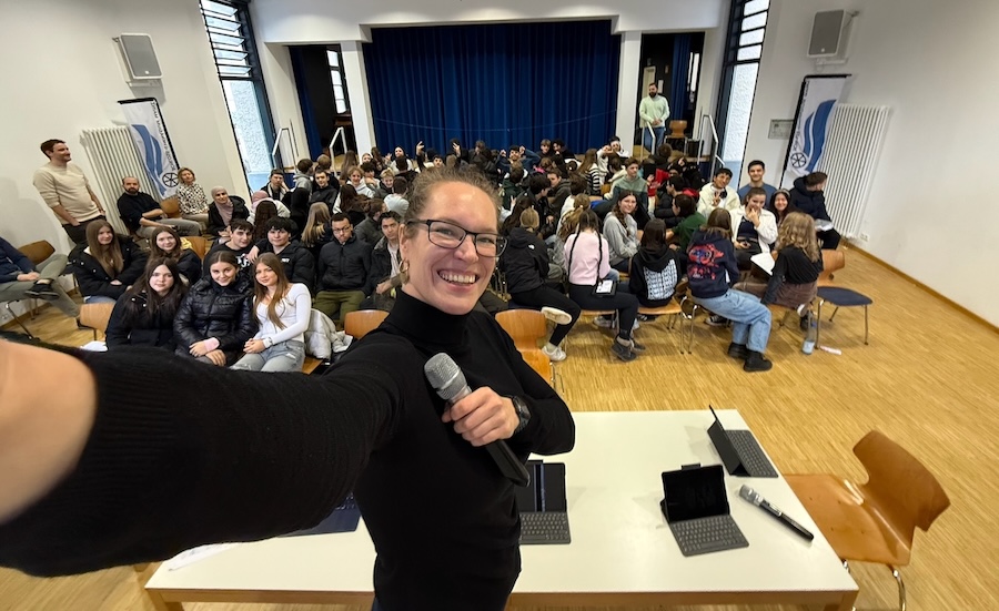 Am 28. Januar brannte die Aula des Schlossgymnasiums in Mainz buchstäblich vor Energie. Über 100 Schüler:innen der 10. bis 12. Klasse erlebten live, dass Künstliche Intelligenz kein trockenes Unterrichtsfach ist, sondern eine Superpower, die man selbst steuern muss.